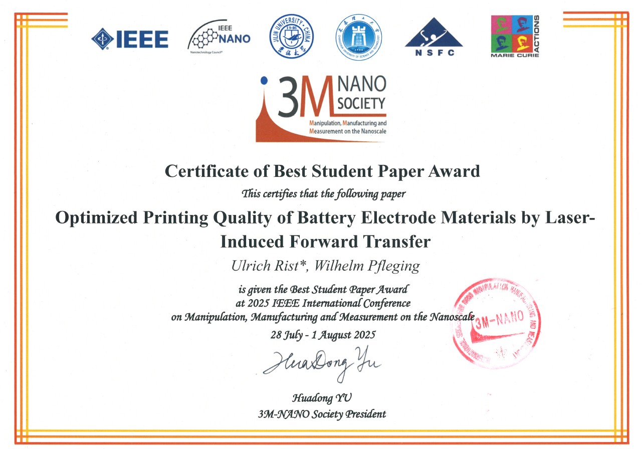 At IAM-AWP, laser process technology is applied for studies in fundamental and application specific research programs. The R&D topics include the functionalization of material properties, micro-connection technologies and 3D shaping through material structuring in micrometer and sub-micrometer range.
